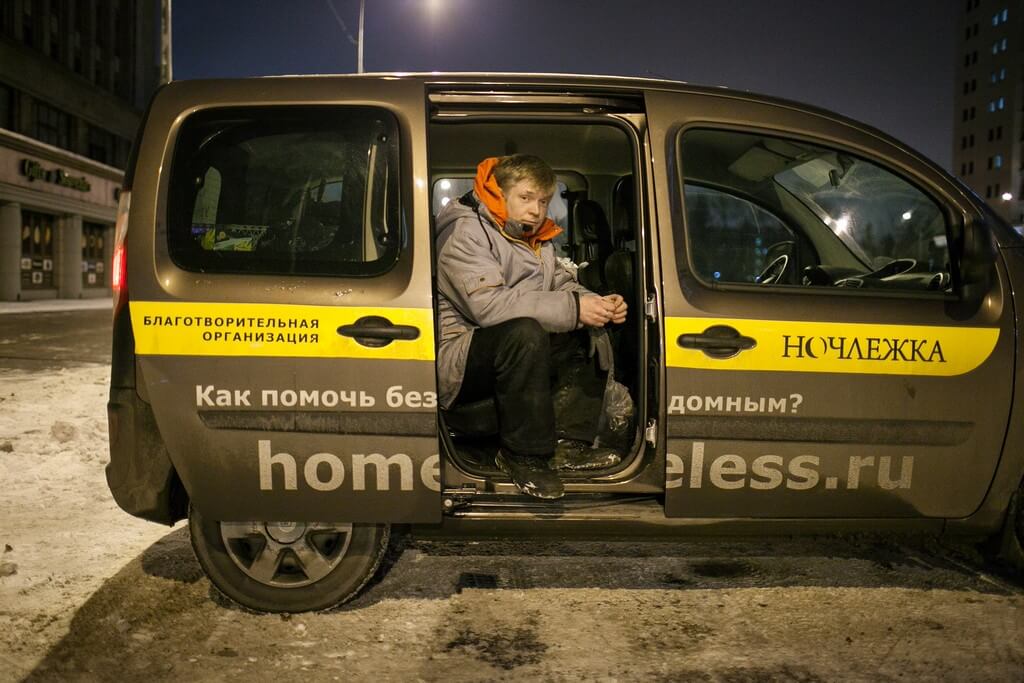 Наш водитель Георгий сразу же согласился проехать по маршруту, как только узнал, что мы хотим помочь «Ночлежке». Он уважает эту организацию и был рад помочь сам.
