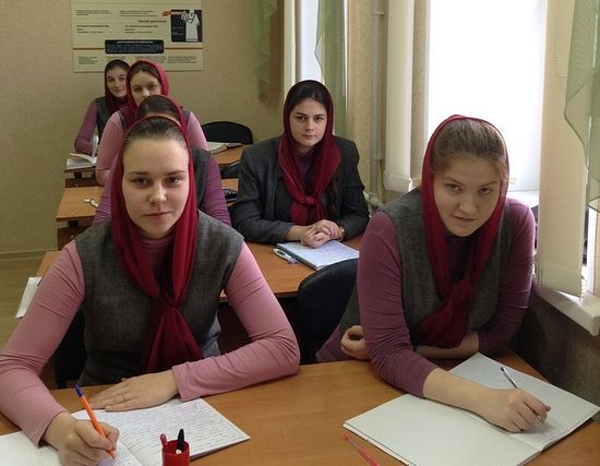 «На самом деле из курса лишь процентов десять выходят замуж во время учебы, остальные определяются после окончания. В любом случае большинство девочек остается работать на приходах и, как правило, выбирают себе близкого по духу суженого, почти все потом становятся многодетными матерями, у некоторых и по 12 детей, приезжают к нам сюда. Фотографии показывают», — делятся педагоги.