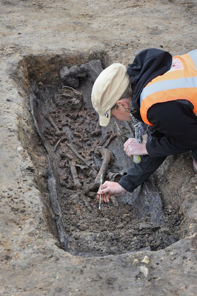 Excavations revealed plank-lined graves with wooden grave markers. The graves were cut into the ground and lined with timber planks before the body was placed inside and planks placed on top to cover it. Graves like this are rare in the UK and are believed to be the earliest examples.