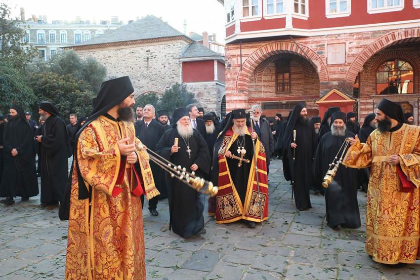 Његова Светост Патријарх српски г-дин Иринеј који се налази у историјској посети Светој Гори, посетио је јуче и Манастир Ватопед у пратњи Преосвећеног Епископа шумадијског г-дина Јована и високопреподобног архимандрита Методија, игумана Манастира Хиландар. Манастир Ватопед има велики значај за историју наше цркве и нашег народа.