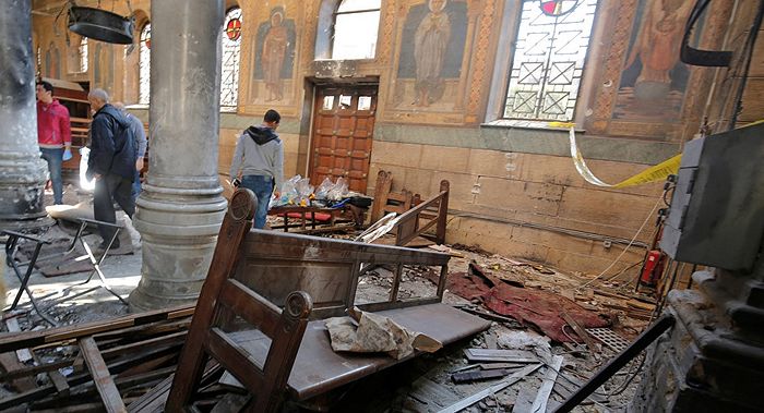 В Каире 11 декабря во время воскресной литургии в коптском соборе Святого Марка, расположенном в районе Абассия, прогремел взрыв. По данным министерства здравоохранения Египта, погибли не менее 25 человек, около 50 получили ранения, передает агентство MENA. Многие пострадавшие находятся в тяжелом состоянии, число жертв может возрасти.
