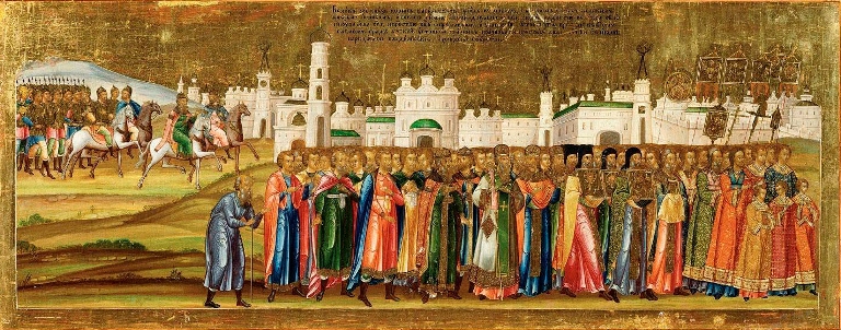 Изложба „Свети заштитници земље руске” представља фото-репродукције икона, које се посебно поштују и којима су се током векова молили Руси за заштиту своје Отаџбине. Древна Русиja је почела да се поклања православним светињама после прелаза у X веку у православну веру, која је дошла из Византије. Поштовање првих руских светитеља је постала духовна основа из које се родила и развијала национална свест. У оквиру изложбе представљено је 30 фотографија-репродукција икона из збирке музеја. Свака икона има синопсис.
