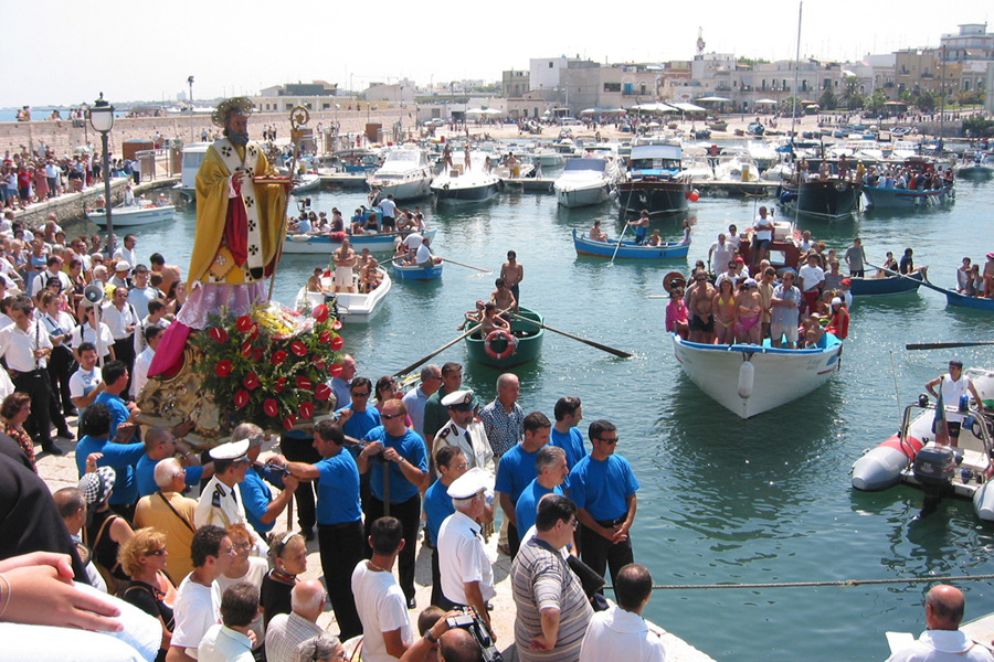 Весь день жители Бари на лодочках, кто побогаче – на катерах и яхтах, подплывают к этому кораблю со статуей Святителя Николая, им оттуда протягивают мешки, в которые люди кладут пожертвования. Монахи-доминиканцы эти дары собирают, взамен одаривая бумажными иконками Святителя. Вечером статую крестным ходом приносят на главную площадь города. Иногда проходит военный воздушный парад, летают самолеты. Это светская часть, она заканчивается 8 мая.
