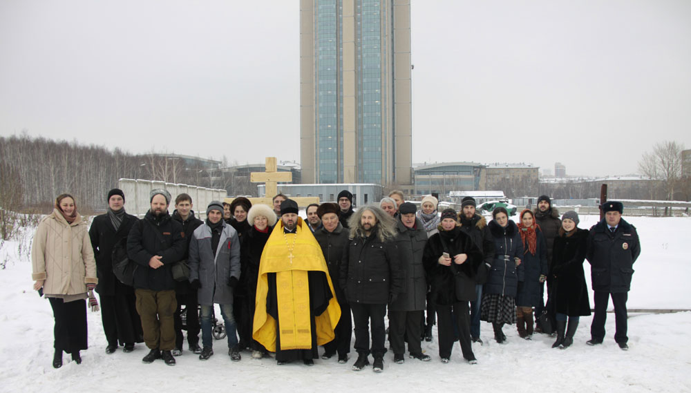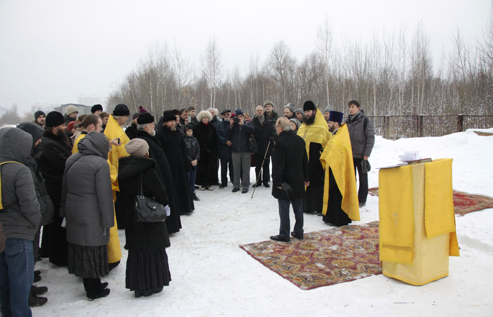 17 декабря на месте строительства храма святых равноапостольных Кирилла и Мефодия при МГУ имени М. В. Ломоносова прошёл первый молебен с освящением поклонного креста.