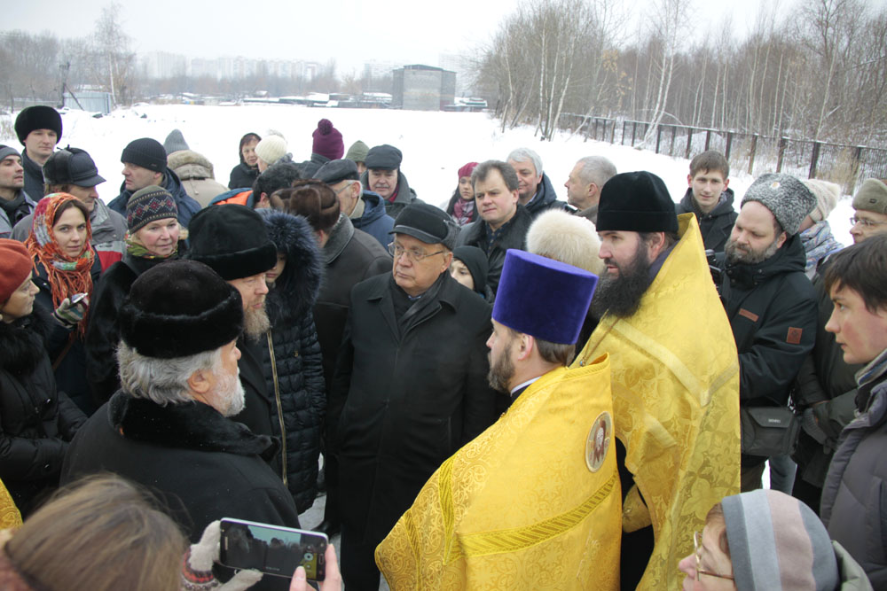 Богослужение совершили настоятель строящегося храма протоиерей Иоанн Лапидус, настоятель храма мученицы Татианы при МГУ протоиерей Владимир Вигилянский и настоятель храма Живоначальной Троицы на Воробьёвых горах протоиерей Андрей Новиков, сообщает Татьянин день.