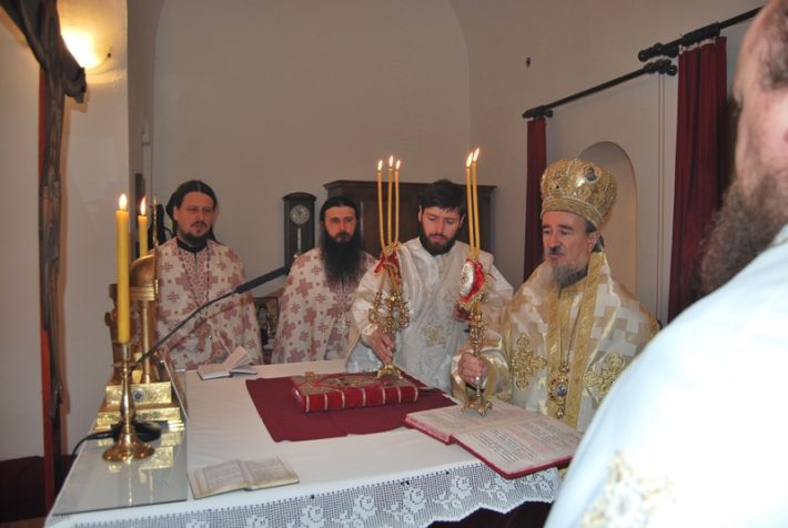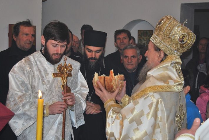 По прочитаној заамвоној молитви Епископ Атанасије преломио је славски колач са архимандритом Серафимом (Кужић), настојатељом светониколајевске Рмањске обитељи, а по свршетку Евхаристије су подељени пакетићи за оне најмлађе чланове заједнице.