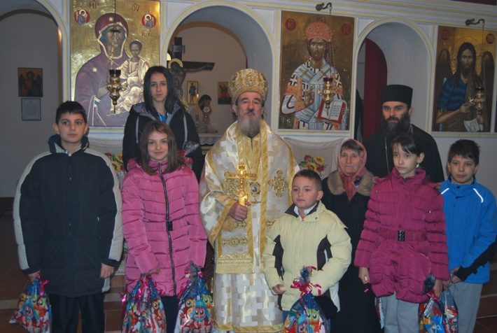 Након поделе пакетића архимандрит Серафим (Кужић), данашњи свечар и домаћин, обратио се Епископу, осталим свештенослужитељима и верном народу речима да се угледамо на Светог Оца Николаја чији спомен данас славимо, те да искористимо сва потребна средства да бисмо задобили живот вечни.