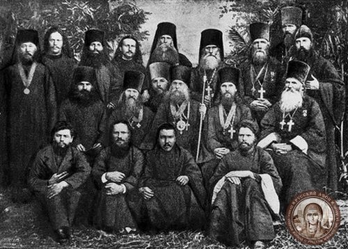 Сотрудники Алтайской миссии, 1880 г. 1. Еп. Владимир (Петров), 2. Прот. Стефан (Ландышев), 3. Игум. Макарий (Парвицкий), 4. Прот. Василий Вербицкий, 5. Иером. Иннокентий (Солодчин), впосл. епископ), 6. Иером. Антоний, 7. Иером. Дометиан