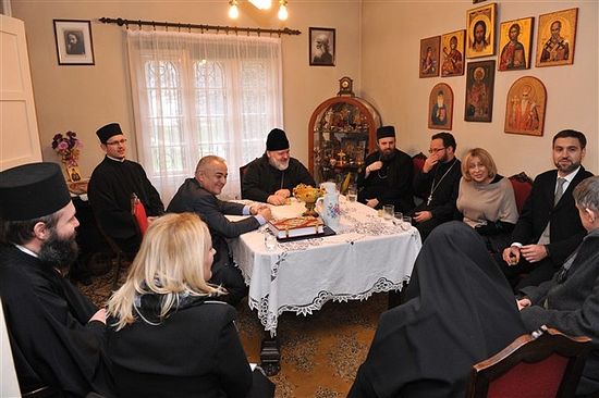 - Уписали сте се у историју као први игуман манастира, којег је Владика Николај подигао. Нека Бог да да његовим молитвама буде сто игумана. Нека Вам Господ подари добро здравље и добру браћу! Од срца вас све поздрављам и захваљујем. Благодат коју сам одавде понео поделићу са својом браћом у лаври Александра Невског, са жељом да нам Господ подари још оваквих посета – рекао је за трпезом љубави Епископ кронштатски Г. Назарије.