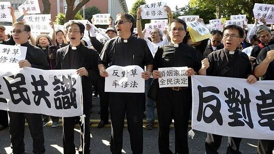 В столице Тайваня Тайбэе тысячи жителей вышли к зданию парламента в знак протеста легализации однополых браков. В ходе митинга произошли также столкновения демонстрантов с правоохранительными органами — митингующие пытались прорваться в здание парламента.