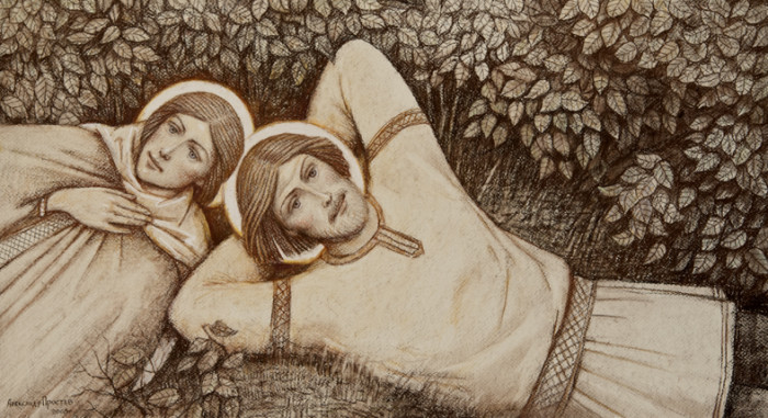 I think the most remarkable and symbolic fact in their Life is their repose. The “Story of Peter and Febronia of Murom,” written by Priest Hermolaus Erasmus, is frequently criticized by hair-splitting researchers of all kinds, but, as far as I know, nobody disputes the fact that the holy spouses departed this life on the same day. All the sources, including this Story and the chronicles, unanimously relate that the saints passed away on the same day and even in the same hour.