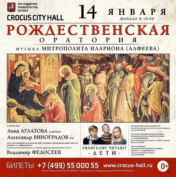 14 января 2017 года в Крокус-сити холле прозвучит "Рождественская оратория" для солистов, хора мальчиков, смешанного хора и симфонического оркестра, написанная митрополитом Иларионом (тогда епископом Венским и Австрийским) весной 2007 года.