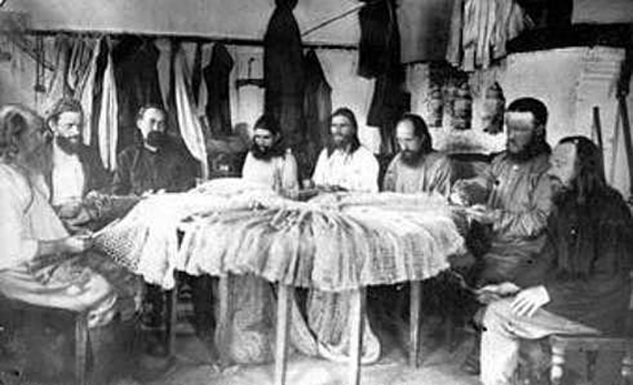 Архиепископ Иларион (Троицкий) в Соловецком лагере среди заключенного духовенства (второй справа). Фото с сайта brooklyn-church.org