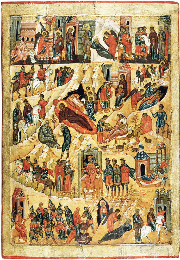 Цари пришли поклониться небесному Царю славы, а воины – послужить Военачальнику сил, жены пришли к Рожденному от жены, чтобы изменить скорби жены в радость; девы – к Сыну Девы, удивляясь, как Творец молока и сосцов, производящий из сосцов текущие сами собою потоки, принял младенческую пищу от матери – Девы; младенцы – к сделавшемуся Младенцем, чтобы «из уст младенцев и грудных детей Ты устроил хвалу» (Мф.21:16; Пс.8:3); отроки – к Отроку, сделавшему их мучениками по причине Иродова неистовства; мужи – к ставшему человеком и уврачевавшему болезни рабов; пастыри – к доброму Пастырю, положившему Свою душу за овец; священники – к сделавшемуся первосвященником по чину Мелхиседекову; рабы – к принявшему образ раба, чтобы украсить наше рабство свободою; рыбари – к сделавшему их из рыбарей ловцами людей; мытари – к явившему из мытарей Евангелиста; блудницы – к простершему ноги Свои к слезам блудницы; кратко сказать, все грешники пришли видеть Агнца Божия, берущего «на Себя грех мира» (Ин.1:29), волхвы – воздавая Ему честь, пастыри – прославляя Его, мытари – благовествуя, блудницы – принося миро, самарянка – жаждая источника жизни, хананеянка – имея несомненную веру.