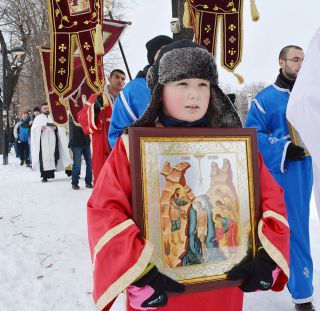 The procession is headed by a hierarch or a priest. A prayer service is performed on the bank, then a boat goes to the middle of the reservoir, the cross is thrown in the water, and participants in the swim jump in after it.