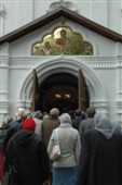 Святейший Патриарх Алексий II на солее храма перед Владимирским образом Божией Матери