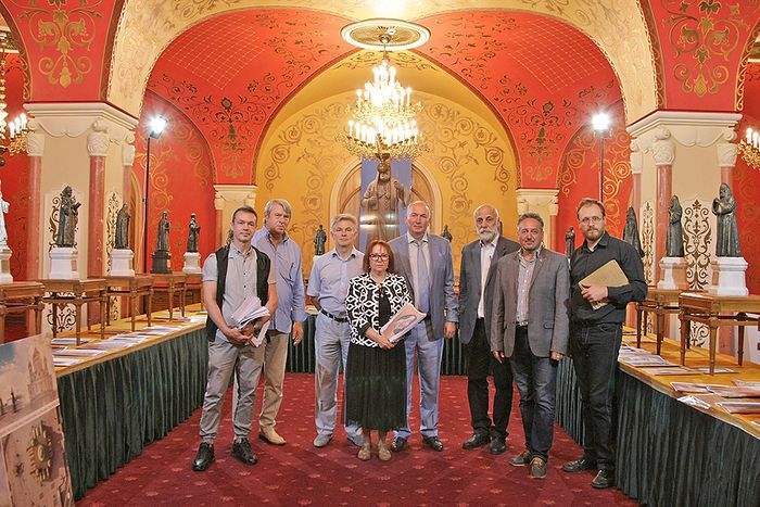 Присутствовали: председатель Экспертного совета по церковному искусству, архитектуре и реставрации протоиерей Леонид Калинин, инициатор и меценат проекта Андрей Чижик, члены авторской группы народный художник России, скульптор Салават Щербаков и заслуженный архитектор России Игорь Воскресенский, кандидат исторических наук Галина Ананьина, члены творческого коллектива: скульпторы, литейщики, архитекторы, участвующие в проекте. Также присутствовали ключарь Храма Христа Спасителя протоиерей Михаил Рязанцев и исполнительный директор Фонда Храма Христа Спасителя С.Г. Семененко.