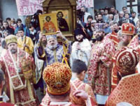 Сейчас у лемков в Польше есть две общественные организации. Мы много работаем с молодежью, у нас есть хорошие связи со многими русинами в Закарпатье, в Словакии, в Венгрии, в Америке и нам очень хотелось бы использовать связи с русскими, которые знают, кто такие русины и знают, что карпатороссы всегда были связаны с православием. Многие этого просто не знают - им не известна наша история. Поэтому мы рады, что смогли приехать сюда в Москву и встретиться с нашими друзьями. Память о жизни и подвиге священномученика Максима нам очень дорога, потому что он присоединился к сонму новомучеников и исповедников XX века, которые отдали свои жизни за святое православие. - Скажите, пожалуйста, а сколько православных приходов среди лемков и в каких епархиях ППЦ проживает лемковское население? Михаил Сандович: В 1945 году многие лемки были перевезены на западную Украину. В 1947 г. была проведена акция «Висла»- в ходе которой прозошло выселение лемков с их земель, на которых они проживали сотни лет. Православные лемки сочувственно относились к России. Они не были ни бендеровцами ни ОУН овцами. Многие служили в Красной армии, многие в Польском Людовом Войске. Они вместе защищали Польшу от гитлеровцев. Во время войны, когда пришла дивизия СС «Галиция» лемки не хотели иметь с этим ничего общего. Сейчас лемки рассеяны – в основном они находятся во Вроцлавско-Щечинской епархии. Там большой центр в Легнице. Кроме того, сейчас многие вернулись и проживают в Перемышльско-Новосондетской епархии, которую возглавляет владыка Адам – это на юге Польши. Среди нас в этой делегации находится отец Евгений Цибульский. Он служил на лемковких приходах. У него в храме во Вроцлаве сделан прекрасный витраж, посвященный священномученику Максиму. - Отец Евгений, расскажите пожалуйста о церковной жизни в вашей епархии. Мы слышали, что в вашем храме помимо иконы священномученика Максима Сандовича еше очень почитается благоверная княгиня Елизавета Федоровна. Отец Евгений: Да, это правда. У нас есть почитаемая икона свщм. Максима. В нашем приходе есть карпатороссы. Много смешанных браков. Мы все очень почитаем этого святого. Я был на канонизации в Горлицах, где священномученик Максим пострадал за православную веру У нас особо почитается и святая преподобномученица великая княгиня Елизавета. Недалеко от Вроцлава близ Чешской границы мы приобрели в 1989 году здание Михайловского храма, в котором была дача одного врача. Мы только, что слышали рассказ о том, что в алтаре собора Сретения Владимирской иконы Божией Матери была при советской власти устроена столовая. То же самое было и в нашем Михайловском храме. Там нет пока дома для паломников, но молодежь приезжает и пожилые люди тоже. Посещают большие группы паломников. Мы ходатайствовали о приобретения приходского дома и помещений для богодельной деятельности. Мы надеялись на помощь Божию, и хотя и с большим трудом, но это нам удалось. Сейчас нам осталось выплатить только небольшой долг. Этот дом посвящен преподобномученице Елизавете. В нашем храме свв. Кирилла и Мефодия во Вроцлаве богослужение совершается преимущественно на польском, греческом и церковно-славянском языках ввиду того, что много смешанных семей. Наша епархия находится в управлении архиепископа Иеремии. - Расскажите нам, пожалуйста, о торжествах канонизации свящ