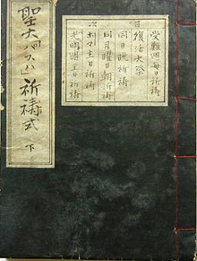 Сергий Седзи так вспоминал о своем первом посещении храма совсем еще маленьким мальчиком: «Вдруг услышал я звон колокольчика, доносившийся до меня через коридор каменного здания миссии. “Этот звон, конечно, к чему-нибудь призывает”, – подумал я и вижу, что жители здания все вышли из своих комнат и идут по одному направлению. Это меня заинтересовало, и я вслед за ними вошел в здание миссии. Я прошел коридор и вышел в сени главного входа в миссию. Оттуда люди по большой витой лестнице поднимались во второй этаж… Дверь налево, самая большая, была отворена настежь; но я сперва сквозь эту дверь увидел только белый потолок, потому что около нее толпились люди. Но я не долго думая со смелостью ловкого мальчика пробрался сквозь толпу и очутился в следующей комнате. Вижу: комната обширная, и в ней царствует полная тишина, несмотря на множество народа, сидящего на полу. С правой стороны, от одной стены к другой, расставлен ряд портретов и картин (как тогда показалось мне), а над ними еще другой ряд. За этими картинами нужно предполагать еще комнату, ибо они не в потолок упираются, и он за ними продолжается. Эта обстановка со всеми ее подробностями, в которые я жадно всматривался, сильно поразила меня своей совершенною новизной и загадочной для меня таинственностью»[5].