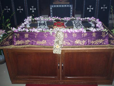 Плащаница в храме Преображения Господня в Саппоро. По-японски написан тропарь «Благообразный Иосиф…»