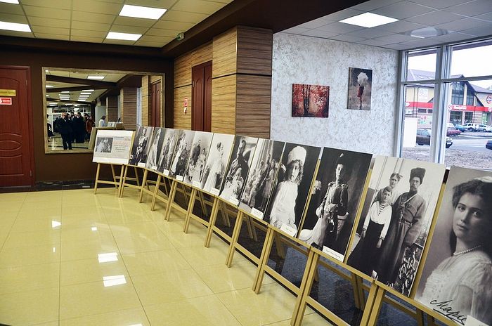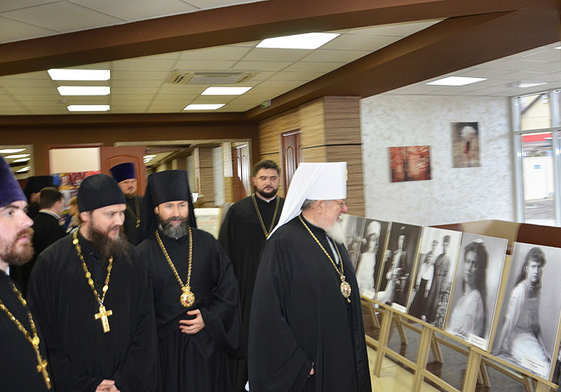 Архиереи совместно с почетными гостями и духовенством в фойе ДК «Современник» осмотрели фотовыставку «Романовы – царское служение», посвященную 100-летию мученической кончины Российского императора и его семьи. Короткую экскурсию по выставке для почетных участников праздника провел иеромонах Игнатий (Шестаков) – насельник Московского Сретенского монастыря.