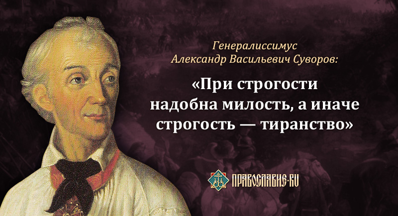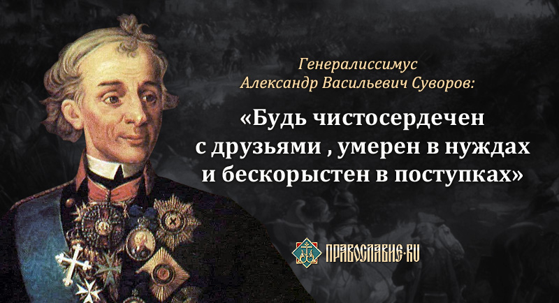 13/26 ноября исполняется 285 лет со дня рождения прославленного русского полководца А.В. Суворова (1730–1800). Трудно оценить вклад этого замечательного стратега и тактика, теоретика военного дела в развитие военного искусства – настолько он велик. Но не менее важно нравственное влияние Суворова на русского солдата, продолжающееся и в наше время. Это был человек сострадательного сердца и высокого ума, самоотверженной любви к Отечеству и глубокой веры в Бога. Об этом свидетельствуют письма и поучения полководца, адресованные как близким ему людям, так и русскому воинству – их он сформулировал в своей «Науке побеждать». Предлагаем познакомиться с некоторыми из них.