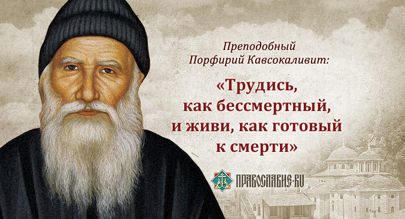 Преподобный Порфирий Кавсокаливит (в миру Евангелос Баирактарис; 1906–1991) – священнослужитель, великий подвижник, с детских лет подвизавшийся во славу Божию и стяжавший многочисленные дары Святого Духа: дар пламенной молитвы, прозорливости, духовного рассуждения. Он мог исцелить больного одним прикосновением руки, духовным зрением мог видеть глубины земли и наблюдать за событиями, происходящими за тысячи километров. Когда речь зашла о духовных дарах старца Порфирия, преподобный Паисий Святогорец сказал: «У него цветной телевизор, а у меня только черно-белый». И добавил: «Таких, как старец Порфирий, Бог посылает в мир раз в 200 лет». Старец Порфирий Кавсокаливит прославлен в лике преподобных в 2013 году.