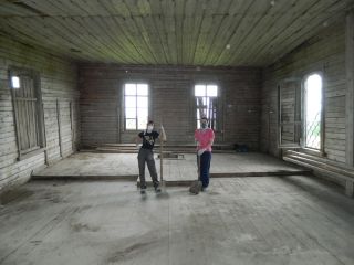• Проведена уборка, выкошена трава вокруг часовни, вынесен мусор и земля, провалившаяся со второго этажа, стёрты и зашкурены надписи внутри храма (в том числе на потолке).