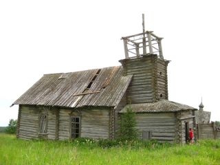 Адрес: Архангельская обл., Пинежский р-н, д. Чикинская. Деревянный храм, обшитый тесом, построен в начале 1900-х.