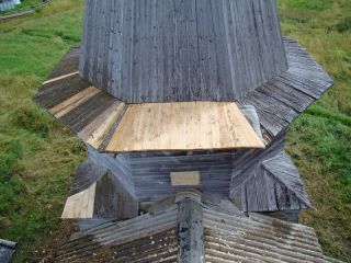 • Отремонтированы полицы шатра и фронтон четверика (угольники).