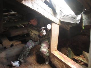 - Откопан фундамент, нижние венцы освобождены от наносов земли, вентиляционные отверстия очищены от скопившегося мусора.