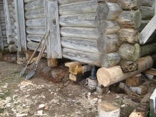 • Откопан фундамент, нижние венцы освобождены от наносов земли, вентиляционные отверстия очищены от скопившегося мусора.