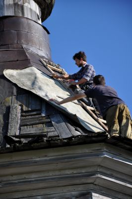 • Проведены консервационные работы колокольни: сделана консервационная кровля из досок, сверху постелен рубероид, установлены стяжки.