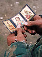 Евгений, так звали нашего собеседника, прибыл сюда, в Аргунское ущелье, 22 июня 2000 года. Его боевая задача - вести наблюдение и не допустить внезапного прорыва боевиков. Рядом с бронетранспортером располагался небольшой блиндаж, где жил расчет боевой машины.