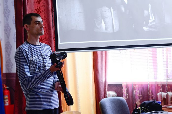 Приехали мы не одни. С нами в команде был настоящий профессионал, фотограф и видеооператор – Дмитрий Синдяков. Он приехал для того, чтоб подготовить ребят к фотоконкурсу, научить их пользоваться профессиональной техникой. Сама техника была с нами – зеркальный фотоаппарат NIKON D3200, который и был торжественно передан спецшколе в безвозмездное пользование.